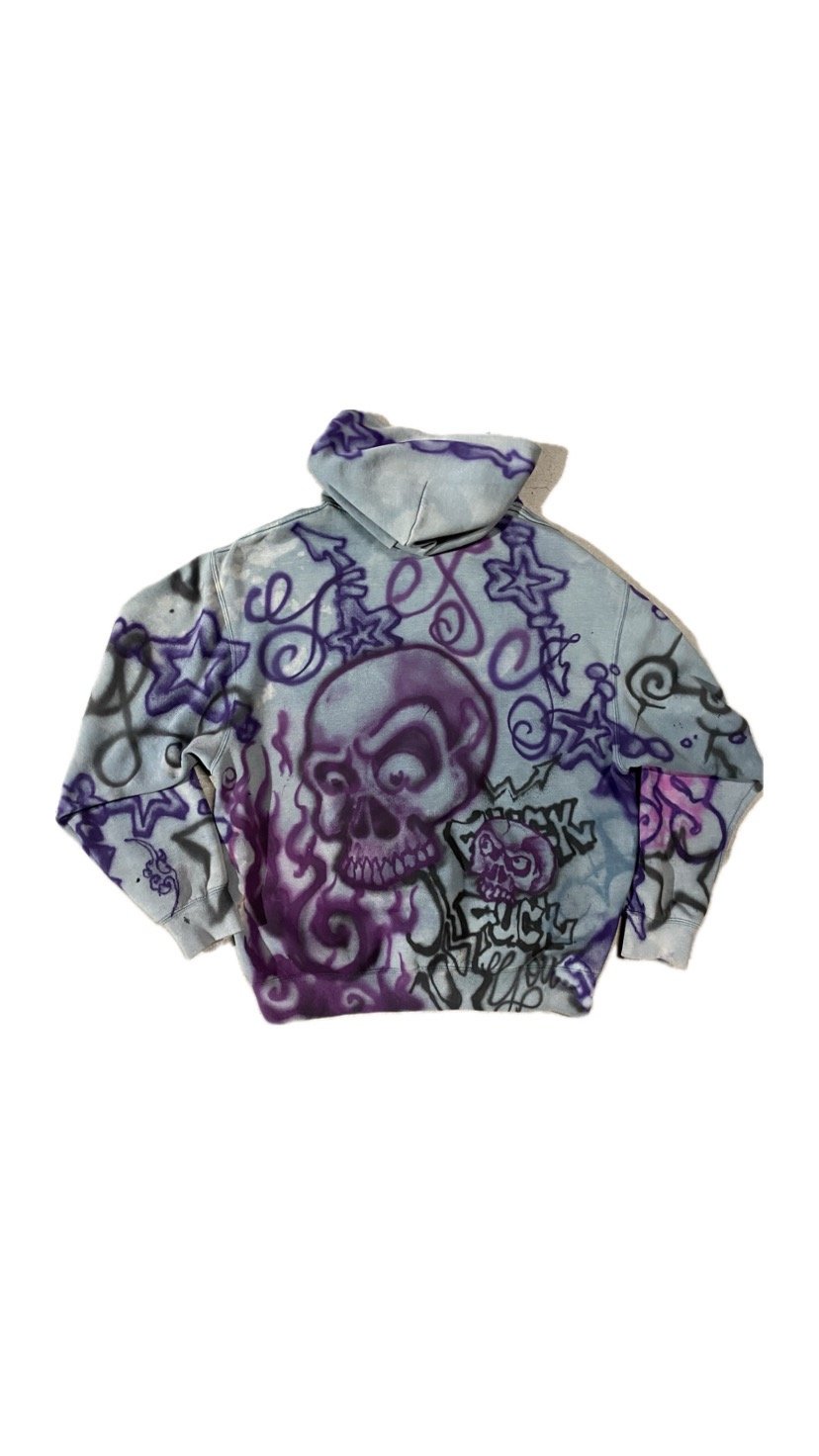 yardsale sunset hoody, bleached and airbrushed with acrylics.